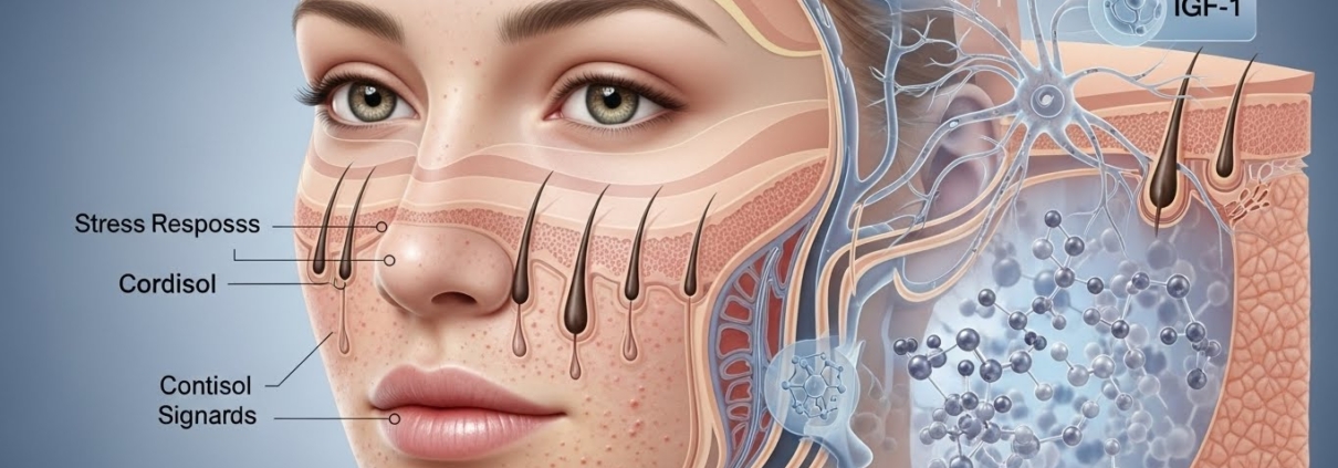 - Metabolic Dysfunction: Modern diets high in refined carbohydrates and high-glycemic loads drive elevated Insulin and IGF-1 (Insulin-like Growth Factor 1) levels. IGF-1 is a potent sebum-stimulating factor and a keratinocyte growth factor, linking diet-driven metabolic stress directly to acne pathogenesis. Underlying hormonal conditions like PCOS frequently exacerbate this.